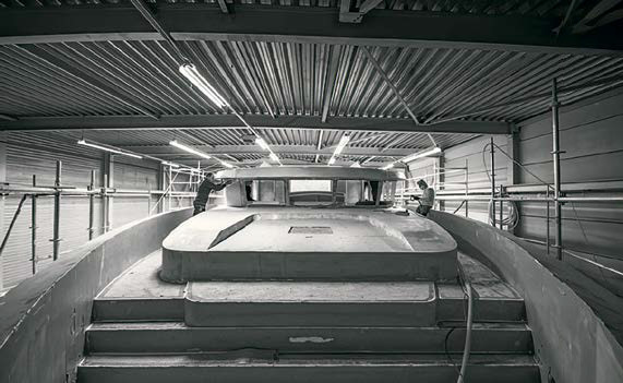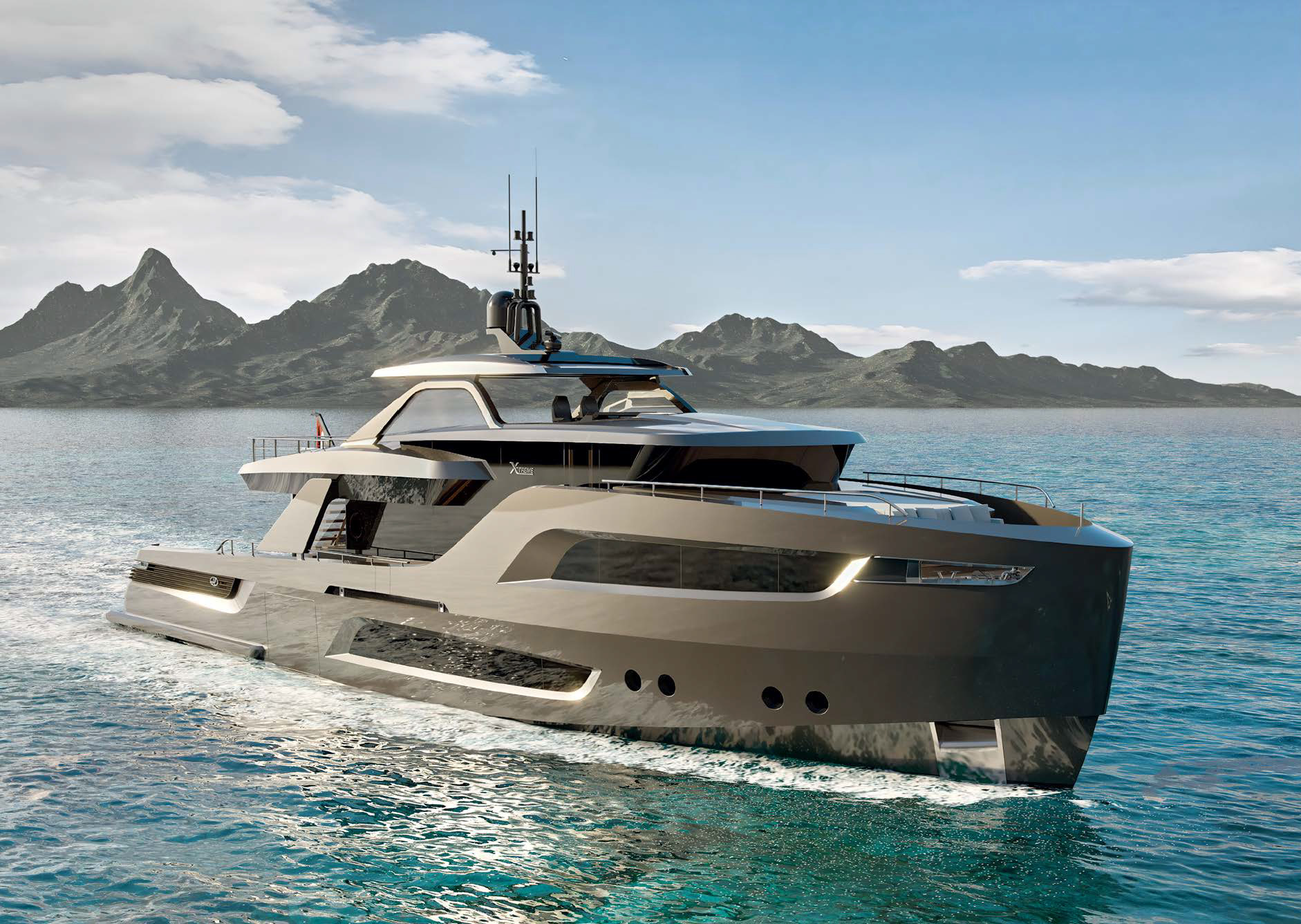 Имя Lady Fleur дали этой лодке ее владельцы, а на верфи Holterman Yachts (Нидерланды) она называется X-treme 105 и возглавляет линейку, куда входят модели X-treme 54, X-treme 78 Sport и -Fly. Броскую архитектуру, разработанную в студии Bernd Weel Design (Нидерланды), отличают скульптурные линии, граненые поверхности надстройки и тонированное стекло (крупные секции). Другие примечательные моменты современного экстерьера — высокий борт в носу, поднятая ходовая рубка, тоже формирующая силуэт, и флайбридж под хардтопом, где я вижу пост управления с тремя креслами (капитану не придется крутить штурвал в одиночестве), обеденную зону и лежаки-диваны. Но обратим внимание на свободную палубу в корме с большим люком посередине; под ним и находится главный секрет этот лодки.