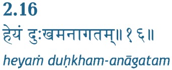 В этой сутре Патанджали говорит о том, что практика йоги — это превентивная медицина для наших умов, способ предотвратить боль и страдания в будущем. Он напоминает, что прошлая боль уже не существует, текущая боль со временем пройдёт, а будущую боль можно уменьшить или её можно и вовсе избежать, придерживаясь йоговского образа жизни.