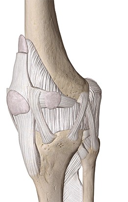 — коллатеральные связки: прочные структуры, преимущественно из коллагена, которые стабилизируют сустав справа и слева;