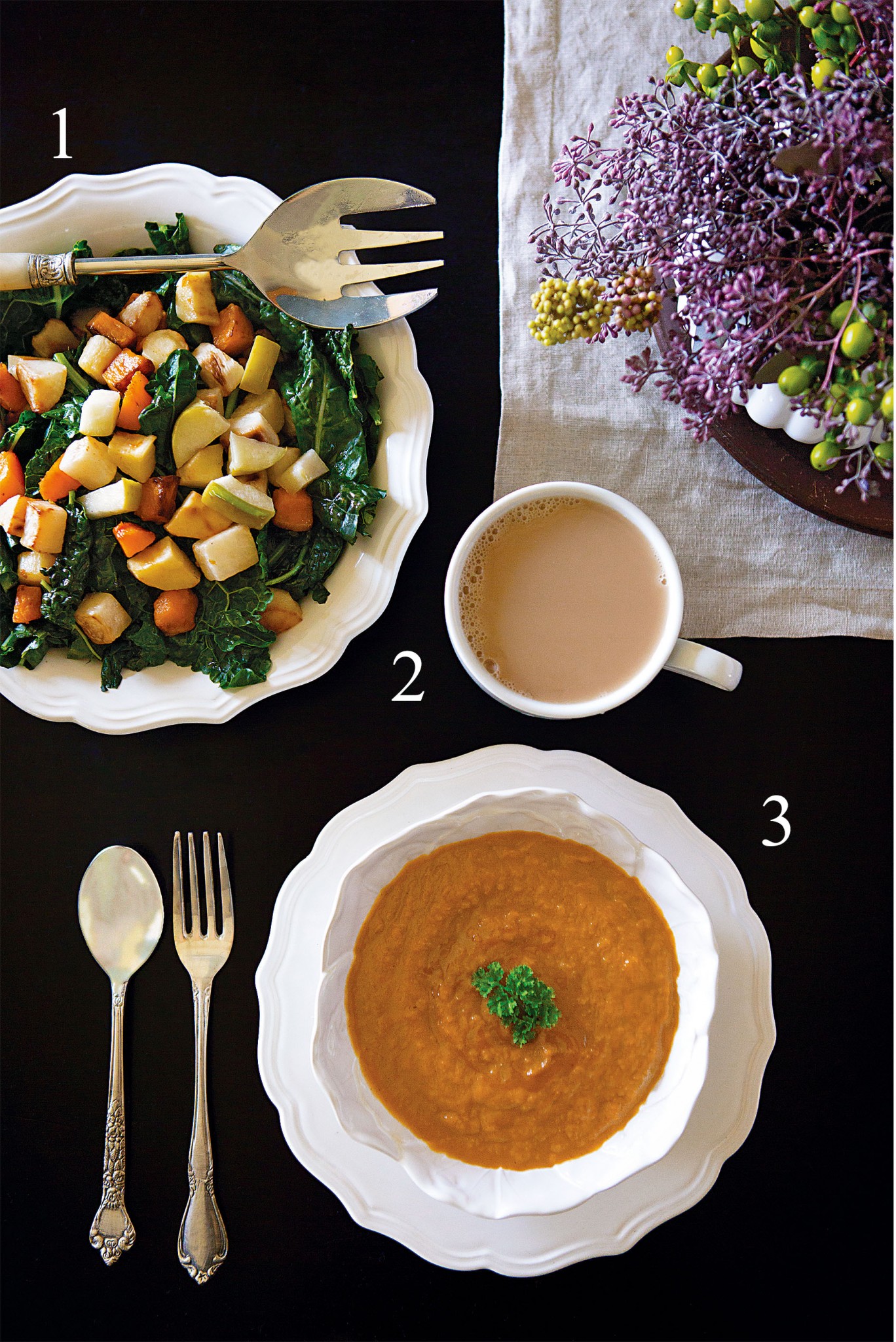 Блюда этого праздничного меню созданы, чтобы сбалансировать все доши, так как в них присутствуют шесть основных вкусов аюрведической кулинарии: сладкий, кислый, солёный, горький, вяжущий и острый. В этих блюдах также учтён и другой аюрведический принцип: природа обеспечивает нас всем, что нам нужно, и тогда, когда нам нужно. Поэтому если вы питаетесь тем, что принято (растёт, производится) в вашей местности, вы будете здоровы круглый год. Это меню рассчитано на продукты штата Массачусетс, поэтому ищите соответствия в своём регионе.