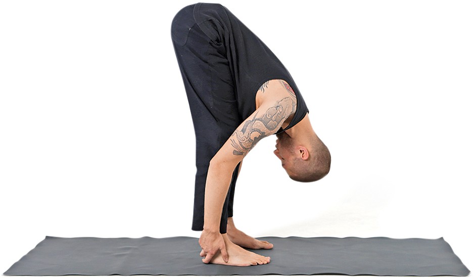 Сохраняем ноги согнутыми в коленях и опускаем живот на бедра. Стопы ставим шире, на ширину бедер, слегка завернув носки внутрь. Со вдохом расправляем живот, правый и левый бок туловища. Продолжая прижимать живот к бедрам, медленно выпрямляем ноги в коленях. Как только живот начинает приподниматься над бедрами, мы останавливаемся и фиксируем данное положение. 6-8 дыханий.