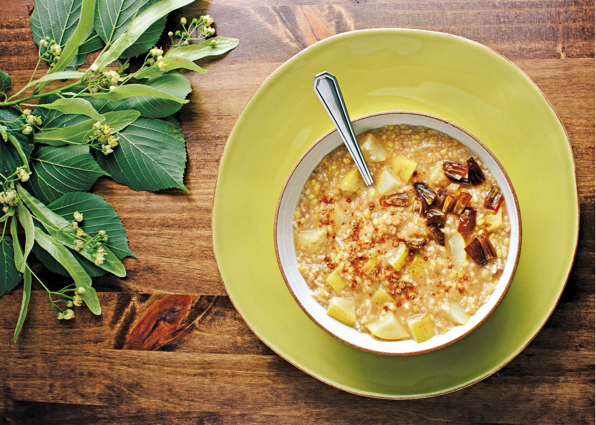 И если в приготовлении индийских основных блюд мы используем в основном готовые рецепты, и лишь по мере углубления в практике решаемся вносить изменения, то для стряпания каш на завтрак поле деятельности более чем свободно. Любая подходящая данной каше по свойствам компиляция имеющихся в наличии специй из первых двух наборов подойдет (разве что кардамон тут неуместен). Или все они сразу. Пробовать и варьировать, оценивая полученный результат, — очень увлекательное занятие. Ясно, что сочетания можно видоизменять, принимая во внимание свойства специй. Тертый и умеренно обжаренный в масле гхи имбирь хорош практически для всех круп.