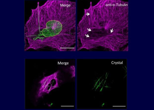 Ученые пронаблюдали, как транспортная молекула кинезин, которая ответственна за перемещение молекул в клетке, передвигается по микротрубочкам – «дорожным путям» клетки. Это удалось благодаря тому, что разрабатываемый учеными молекулярный инструмент стал выполнять не те функции, которые от него ожидались. Вместо флуоресценции в ответ на клеточный окислительный стресс молекула-сенсор стала кристаллизоваться вслед за движением кинезина. Статья опубликована в Nature Communications.