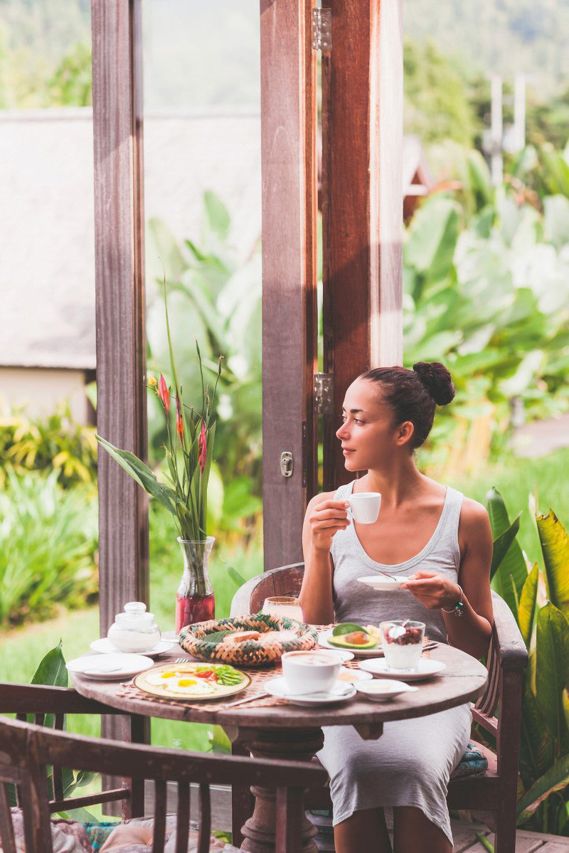 Перед завтраком можно выпить тёплой воды с ломтиком лимона. Это активизирует пищеварение. Традиционная овсяная каша – хороший вариант, но только если у вас есть возможность её не варить, а залить овсяные хлопья любым растительным молоком накануне вечером. А утром добавить в них ягоды или орехи. Яичница, бутерброд с сыром и помидором, тост с авокадо, брынзой и яйцом или с зеленью, сливочным сыром и малосолёным лососем – это то, что можно найти даже в отеле. А вот от предлагаемых там соков на завтрак лучше отказаться: они резко повышают уровень глюкозы в крови и не содержат полезной клетчатки, которая есть в фруктах. После резкого повышения уровень глюкозы так же быстро падает. Возникает чувство голода и желание перекусить.