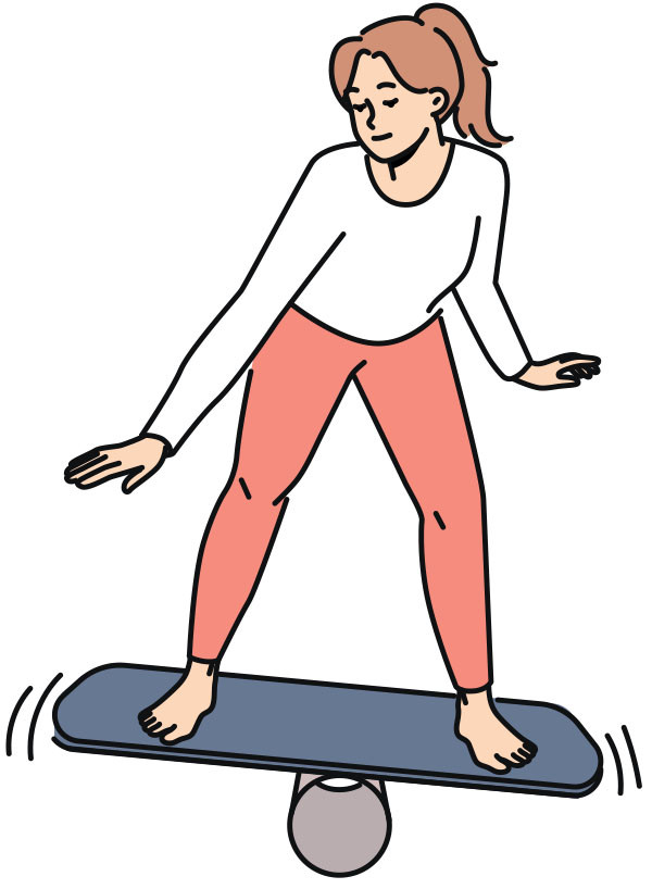 – Попробуйте баланс-борд. Этот простой тренажёр похож на скейт, только без колёсиков. Он состоит из двух частей: ничем не соединённых доски и валика. Идеальный баланс-борд для новичка имеет размер доски 75 х 35 см, диаметр ролика – 16 см. Первые упражнения на баланс-борде можно делать с опорой на стену или руки партнёра. Но уже через неделю вы сможете балансировать на нём более уверенно. Это лучший тренажёр для развития координации движений. Основное воздействие приходится