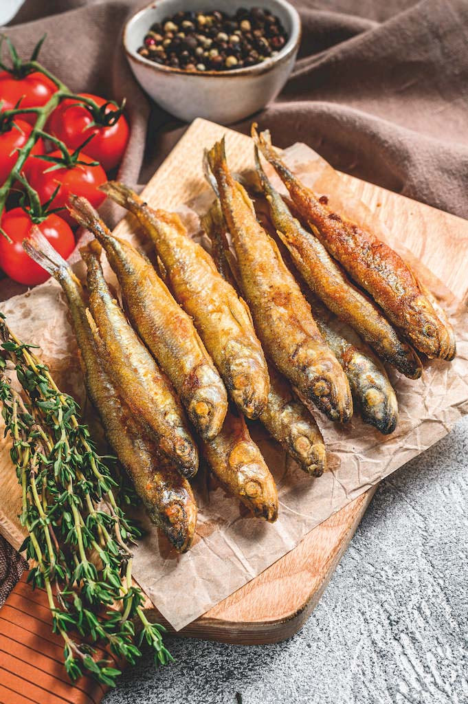 Самой вкусной корюшка получается, если приготовить её во фритюре. Считается, что такой способ приготовления очень вреден: в процессе нагревания фритюра образуются канцерогенные акриламиды, а продукт становится очень жирным, ведь на 1 его часть надо взять 4 части растительного масла. Что касается акриламида, тут не поспоришь: его вред доказан. А вот утверждение, что жарка во фритюре сильно повышает жирность, весьма спорное.