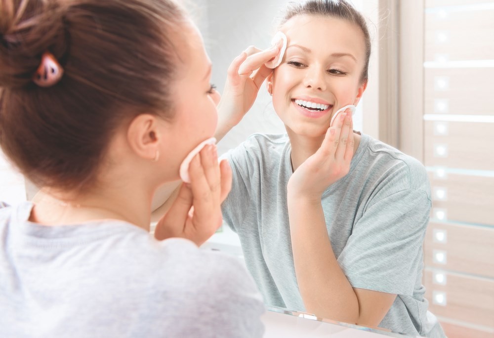Частички тонального крема или пудры, не смытые перед сном, могут провоцировать воспаления. Поры обязательно должны быть чистыми. Остатки макияжа часто становятся причиной образования чёрных точек – комедонов, которые могут беспокоить довольно долго. Один из самых оптимальных алгоритмов очищения вечером – мицеллярная вода или бифазное средство для снятия макияжа, далее гель или пенка для умывания и тоник по типу кожи. Удалить макияж также можно гидрофильным маслом – оно растворит жир и загрязнения на поверхности кожи. В зависимости от специальных эфирных компонентов нормализует состояние проблемной кожи, успокаивает чувствительную и восстанавливает баланс влаги.