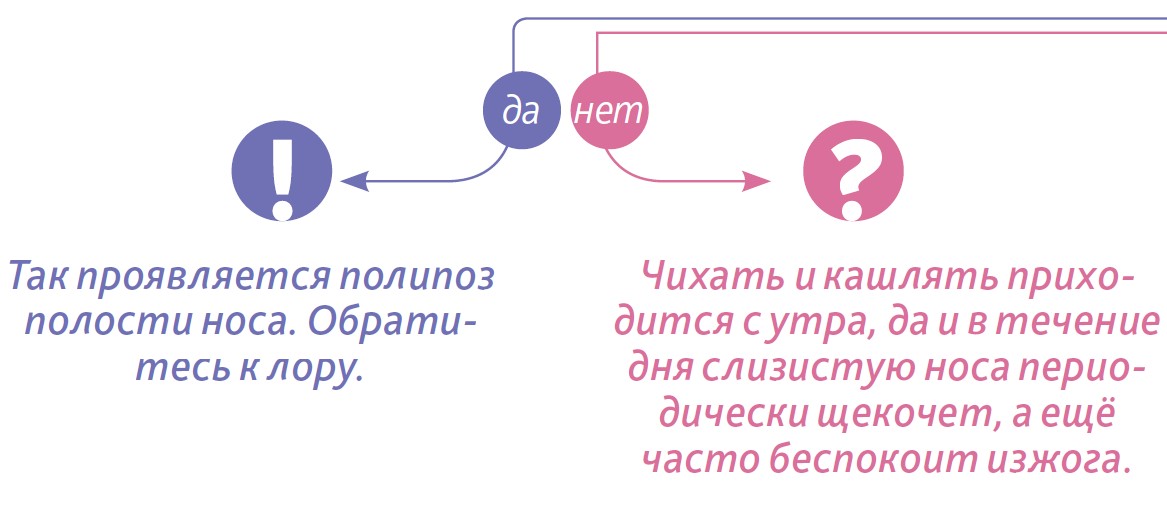 Как это ни странно, но заболевание желудочно-кишечного тракта нередко является причиной проблем с системой дыхательной, а именно частого кашля и чихания. Всё дело в том, что заброс соляной кислоты из желудка в пищевод (а ГЭРБ связан со слабостью сфинктера, расположенного на границе пищевода и желудка, в результате чего кислота попадает в пищевод, повреждая его слизистую) может быть настолько мощным, что достаёт до слизистой носоглотки. К тому же слизистая представляет собой единое рефлек торное поле, и проблемы в одном месте неминуемо отражаются в другом. Типичный симптом ГЭРБ – изжога, но иногда она может отсутствовать, особенно когда кислота забрасывается ночью. Поэтому, если вы часто чихаете и кашляете, а с лёгкими всё в порядке, нужно проверить состояние желудка.