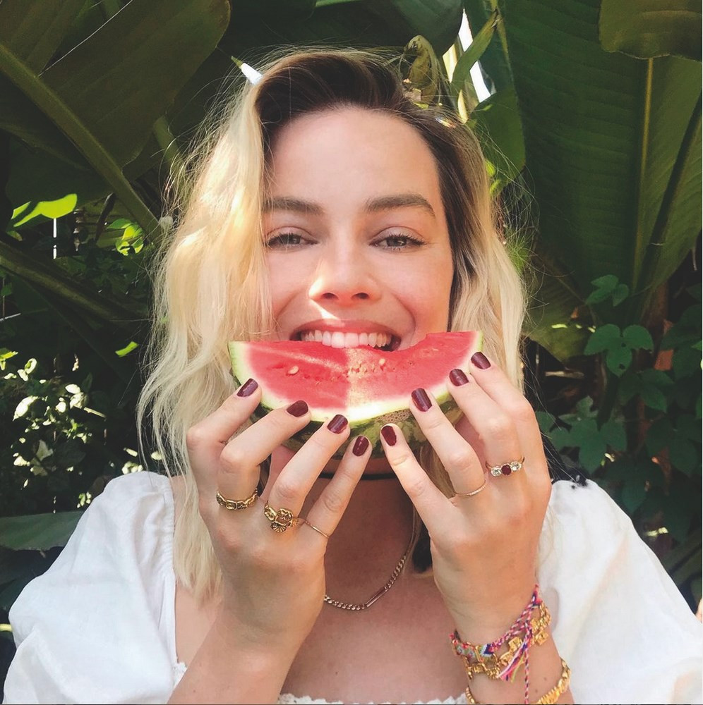 Летом прошлого года сразу несколько голливудских звёзд признались в любви арбузу – главной ягоде жаркого сезона. Марго Робби сказала, что обожает арбуз за яркий цвет и сочный сладкий вкус, который заменяет летом любой десерт. Актриса показала, как вонзает в красную мякоть белоснежные зубы. «Улыбка шире арбузной дольки!», пишут восторженные поклонники.