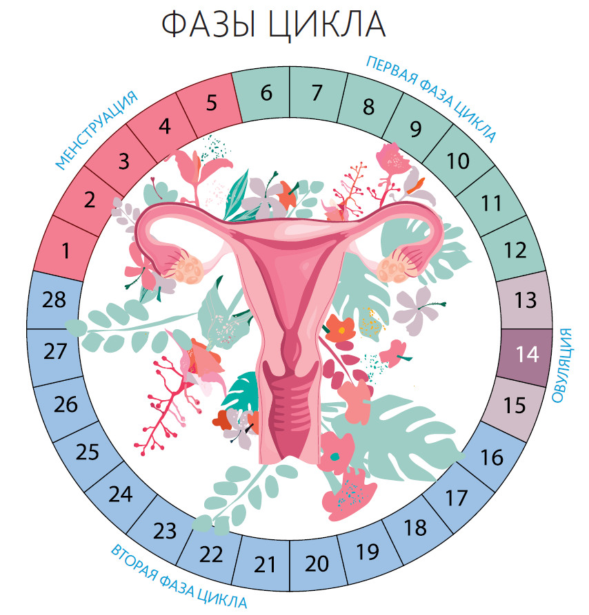 Отсчёт цикла идёт с первого дня менструации. В эти дни на организм действует эстроген, а из-за кровотечения в крови уменьшается концентрация эритроцитов и гемоглобина. Это приводит к общей слабости, временным симптомам анемии. Снижаются выносливость и активность. Нехватка гемоглобина сказывается и на психологическом состоянии, поэтому, по возможности, лучше избегать стрессовых ситуаций, не назначать важных переговоров или собеседований.