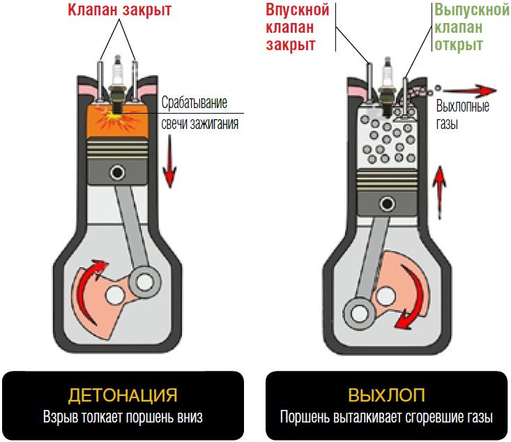 Для начала объясним, как работает обычный поршневый двигатель. Если совсем просто, то горящая смесь воздуха и горючего в его цилиндрах обеспечивает в нем возвратно-поступательное движение поршней, которое преобразуется во вращательное движение коленчатого вала.
