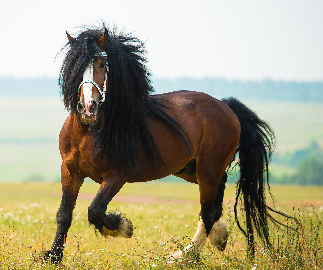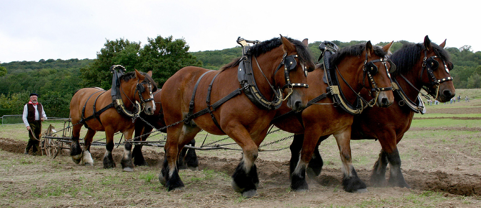 Лошадей, которые могут и тяжеленные грузы возить, и поле пахать, и всадника в неподъемной амуниции возить, выводят с давних времен. Во многих странах мира есть собственные тяжеловозные породы, каждая со своими особенностями. Сегодня таких пород 40. Их характерные черты – внушительные размеры, массивное тело, мощные, с широкими копытами, ноги. Еще – золотой характер. Гиганты на редкость добродушны, покладисты и спокойны. Двигаются тяжеловозы, как правило, не спеша, легкой трусцой или мягким аллюром, шаг чередуют с галопа на рысь, так что если вы такого коня оседлаете, то трясти вас точно не будет. Быстро бежать кони могут тоже, правда, недолго, километра полтора, и разгон им для начала требуется в метров 150–200. Но они в основном не для верховой езды предназначены. Им нет равных в работе на пахоте с плугом. Они, как говорится, пашут и пашут. Весь световой день, без устали. Так же долго они могут везти за собой и воз весом в несколько тонн. И селекционеры их очень ценят – свою мощь и стать они передают потомству, поэтому коннозаводчики часто используют тяжеловозов-жеребцов для выведения новых и улучшения существующих пород.