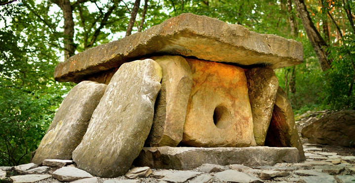 Дольмены можно обнаружить в самых разных уголках мира. Особенно много их на Корейском полуострове, в Индии, Японии, Индонезии, в Европе и на Кавказе. Их количество измеряется десятками тысяч. В одной России их насчитывается более двадцати тысяч. Объединяют дольмены общие внешние признаки – они похожи на небольшие домики, состоящие из нескольких каменных массивных плит. Четыре плиты поставлены вертикально, а сверху положена плита-крыша. Иногда в дольменах есть плита-пол, но не во всех. В одной из стен дольмена обязательно есть небольшое круглое отверстие, которое закрывается массивной каменной пробкой. Проникнуть через это отверстие возможно либо ребенку, либо маленькому человеку.