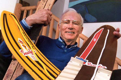 Немного сухой истории, но куда же без нее Все началось с отцовской любви. В 1960 году американец Шерман Поппен из штата Мичиган из двух лыж изготовил для своей дочери доску с веревкой, привязанной к изогнутому носу. Назвал его «снерфер» от слов snow и surf, что можно перевести как «серфинг на снегу». По своей конструкции предшественник сноуборда был близок к скейтборду, только без колес. Чтобы удержаться на нем нужно было использовать нескользящую обувь и держаться за веревку.
