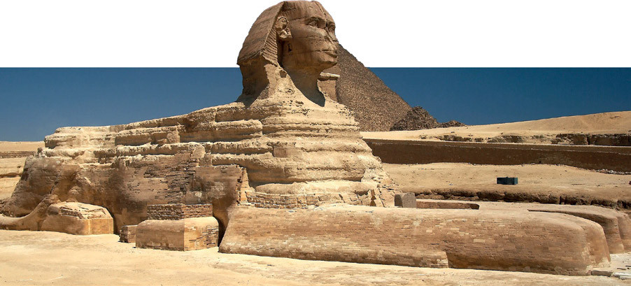 Но отправимся к Сфинксу, объекту грандиозному и неоднозначному. Начать с того, что эта монолитная скульптура с человеческой головой и телом льва – самая большая в мире. Ее длина 73 метра, высота – 20 метров. По официальной версии, Сфинкс был вырублен из цельной скалы по повелению фараона Хеопса. Хотя на гранитной плите между лапами написано, что фараон только раскопал его и затем отремонтировал. Создан Сфинкс во времена строительства пирамид или уже существовал до этого? Тоже вопрос. Много лет он был засыпан песком, лишь голова оставалась на поверхности. Время от времени его раскапывали, а потом он снова погружался в песок. Пойди разберись в этих сыпучих тайнах.