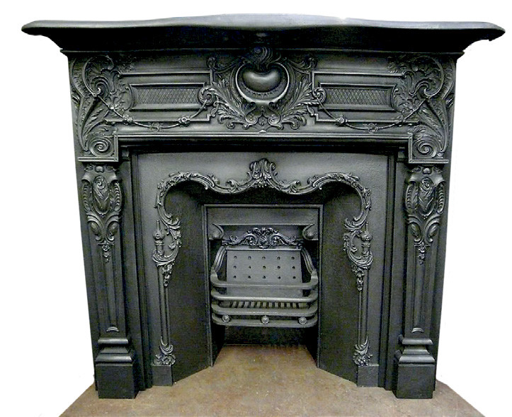 Декоративные орнаменты становились ассиметричными и динамичными, с изображениями растений, животных и детей. Задняя стенка топки закрывалась чугунными панелями с рельефами на библейские темы или военными сценами. Часто использовался белый мрамор в сочетании с золоченой бронзой. На каминной полке размещались часы, вазы и канделябры, а перед топкой ставился шелковый экран в рамке, который усиливал декоративный эффект и рассеивал тепло.