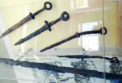 Оружие, которое изготавливалось местными мастерами, и предметы быта, найденные в Танаисе при раскопках