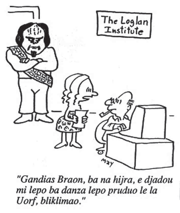 Разработку логлана – от английского logical language, «логический язык» – доктор Джеймс Кук Браун начал специально для лингвистических исследований в 1955 году; в 1960-м была опубликована первая посвященная языку статья (в 1965-м Роберт Хайнлайн в повести «Луна жестко стелет» уже упоминал логлан как язык, которым пользуется компьютер), спустя 12 лет состоялась первая встреча людей, заинтересовавшихся новым языком, еще через три года вышла книга Брауна «Логлан 1: логический язык». А в результате работы, проделанной в 1977–1982 годах, логлан стал первым в истории языком с грамматикой, свободной от логических конфликтов. Была даже идея сделать из логлана человеческий язык, понятный компьютеру. Эйфория вскоре прошла, но и сегодня в мире, по разным оценкам, от нескольких десятков до нескольких тысяч человек понимают тексты на логлане, а Институт логлана рассылает материалы всем, кто хочет его выучить. (Облик у логлана – по замыслу, культурно нейтрального – вполне европейский. Например: I na lepo mi setfa le purda lemi smina guo, de vijbangoi lia lepo le perla ga clidyfea sau le bitse je lomi cetlo dedjo. Это значит: «Когда я запоминаю слово, оно исчезает, словно жемчужина, через мои скользкие пальцы».)