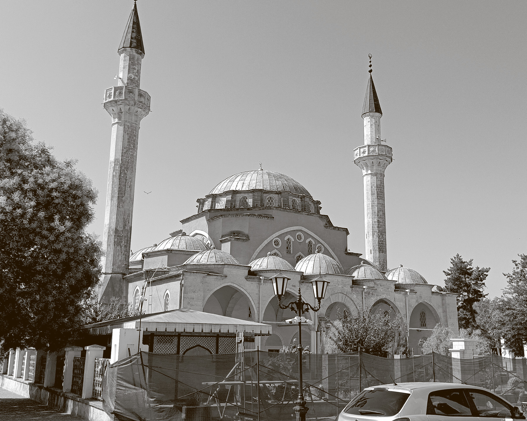 Присел на скамейке у Джума-мечети. Напротив – фонтаны, крашеный под бронзу памятник татарскому сказителю Ашик Эмеру, чуть дальше – доходный дом Семёна Эзровича Дувана, примечательный архитектурой модерна и именем владельца – легендарного градоначальника Евпатории.