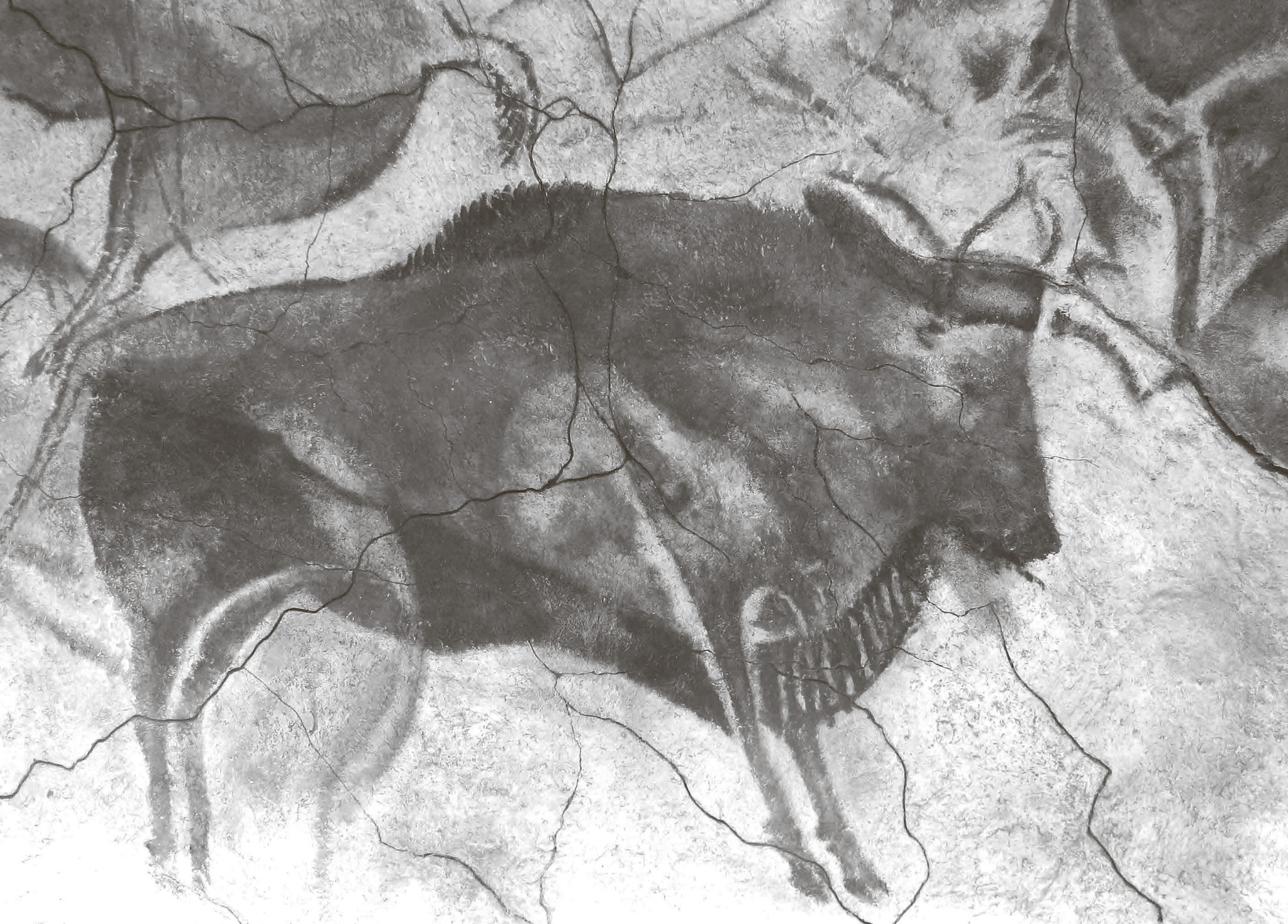 Знаменитый бизон, изображенный кроманьонцем на своде пещеры Альтамира в Испании. Эпоха верхнего палеолита