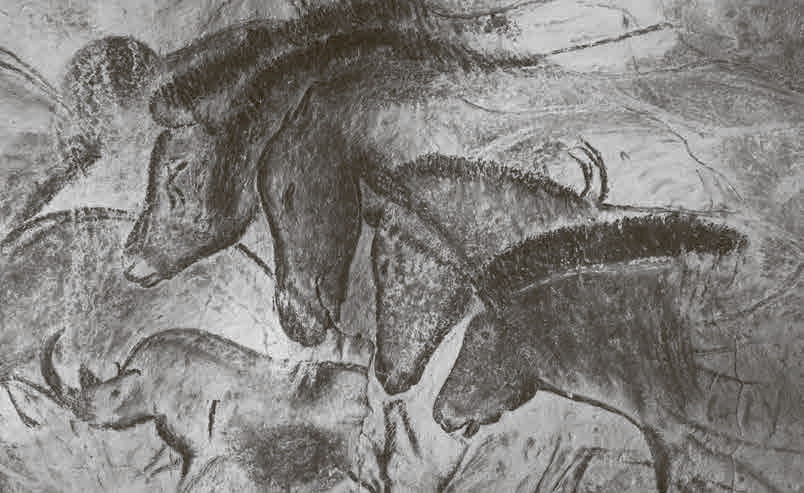 Изображения носорога и диких лошадей, на которых люди охотились, в пещере Шове на юге Франции. В пещере, включающей залы и галереи общей длиной 800 метров и высотой до 18 метров, обнаружено 435 рисунков, которые представляют собой один из древнейших образцов пещерного искусства в мире. Возраст старейших из них оценивается в 36 тысяч лет!
