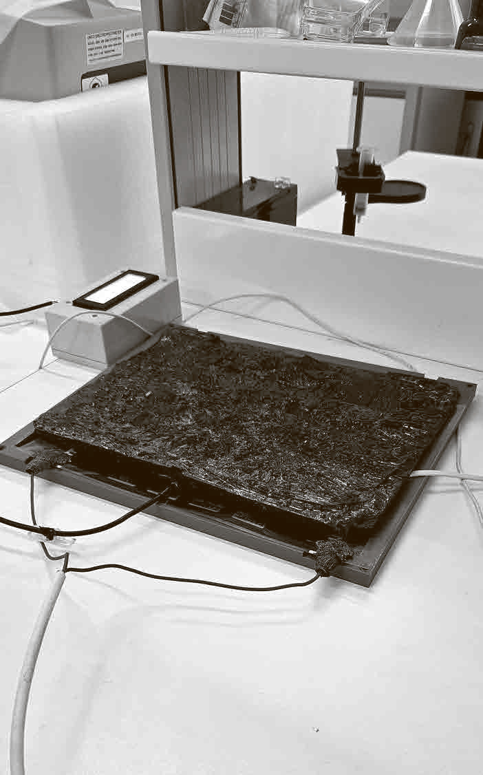 Рассказ о первом проекте стоит начать с замечания, что большинство фазопереходных теплоаккумулирующих материалов испытывают фазовый переход «твердое – жидкое». Однако при охлаждении электроники или отводе тепла от промышленных установок зачастую нельзя допускать образование жидкой фазы. Поэтому химики университета «Дубна» разработали максимально доступные технологии включения создаваемых материалов в пористую либо волокнистую углеродную структуру – тоже подготовленную по авторским методикам. Такой процесс плавления внутри углеродной матрицы позволяет избежать образования жидкой фазы вне ее. Использование новых материалов для пропитки различных углеродных волокон может существенно повысить эффективность систем теплоизоляции. Матрицей материала является графитовый войлок или волокнистые углеродные материалы, которые значительно увеличивают теплопередачу и обеспечивают образование жидкой фазы внутри углеродного материала при плавлении в результате нагревания.