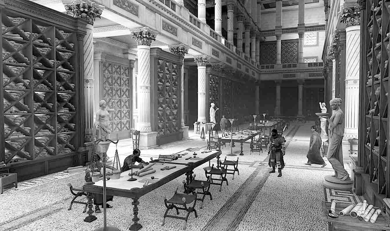 Поэтому даже не вполне ясно, как соотносились между собой два учреждения в Александрии Египетской: библиотека Музея и библиотека при храме Сераписа — не то первая была корпоративной, а вторая — общедоступной, не то как-то еще. Существенно то, что в Музее не просто по-новому хранили книги — архивное дело вполне существовало и до эпохи эллинизма; архивы умели хранить и в греческих полисах, обычно в храмовых сокровищницах, равно как и собирать храмовые и частные библиотеки, где тексты как реликвии хранятся надежно. Их по-новому воспроизводили, по-новому производили для всех, копировали, делая уже не просто храмовую надежную копию, но публичное представление книги.