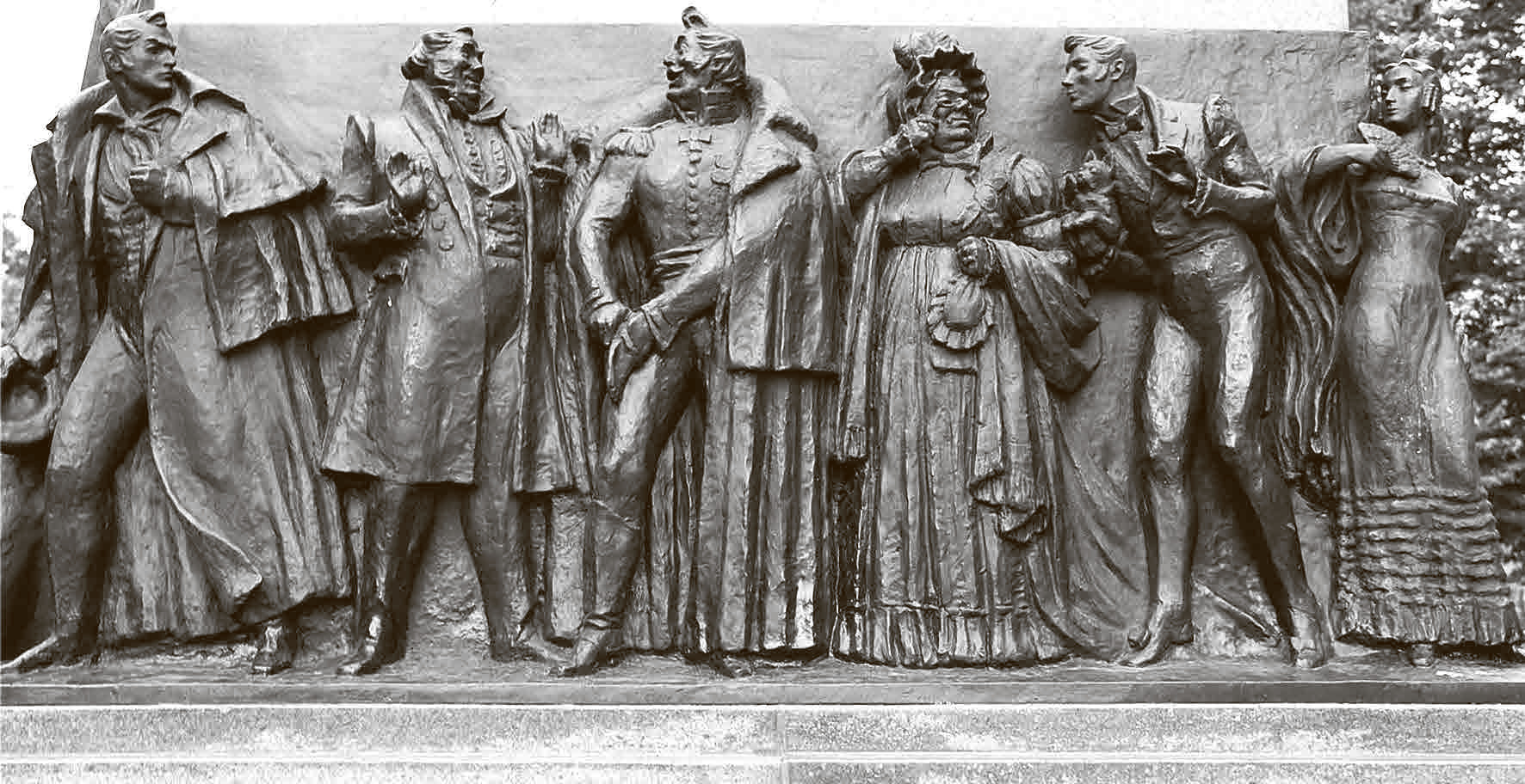 Памятник А. А. Мануилова в начале Чистопрудного бульвара в Москве – оттепельный, того же ряда, что театр-студия «Современник», появившийся в год открытия памятника, в 1959‑м, на Триумфальной площади. Этот памятник, с фигурками героев комедии «Горе от ума» у ног классика – лучшее выражение студийного театра: задумчивость драматурга, наложение узнаваемых амплуа на узнаваемые роли, отдернутый занавес, показывающий демократизм студийных постановок. Хотя появление сначала стелы в честь Грибоедова, а потом и величественного памятника – результат стечения случайных обстоятельств, тем не менее памятник лучше всего выразил дух писателя: никогда не быть одному и всегда сопротивляться любой монополии: монополии на слово, на дело, на власть над обстоятельствами. Гладкому литературному слову Грибоедов противопоставлял вспышки остроумия, слишком казенным проектам – точную наблюдательность, бюрократической исполнительности – многоязычие, шаблонной отчетности – хитрости дипломата. Можно и нужно сказать, что он был антимонопольным гением нашей русской литературы.