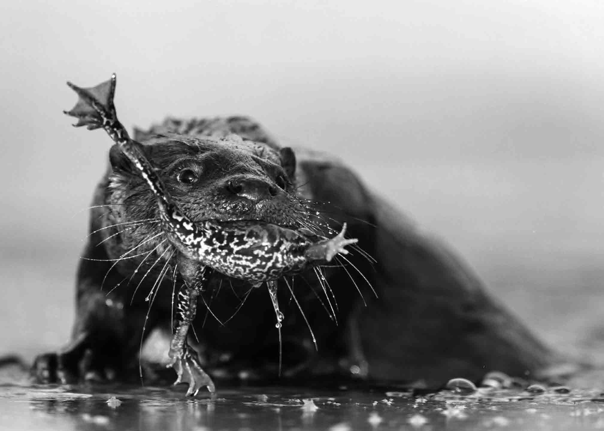 Выдра речная, или обыкновенная, (Lutra lutra), называемая еще «порешней», – одно из самых удивительных существ на свете. Этот ловкий и умный хищник из семейства куньих в какой-то момент «решил», что жизнь на суше полна опасностей и проблем, а в воде их значительно меньше. Переселившись в реки и озера (а некоторые и в море), выдры приобрели перепонки между пальцами, длинное мускулистое туловище в метр длиною, приспособленное к плаванию, а также сильный заостренный хвост. Вес их зависит от возраста и варьирует от 6 до 12 кг. В воде это настоящие акробаты, не упускающие ни одной водяной дичи. Они умудряются ловить рыбу даже в совершенно мутной воде. В этом им помогают вибриссы – «усы», торчащие вокруг морды. Они передают колебания воды, идущие от жертв, своим хозяйкам, а уж те не дремлют…