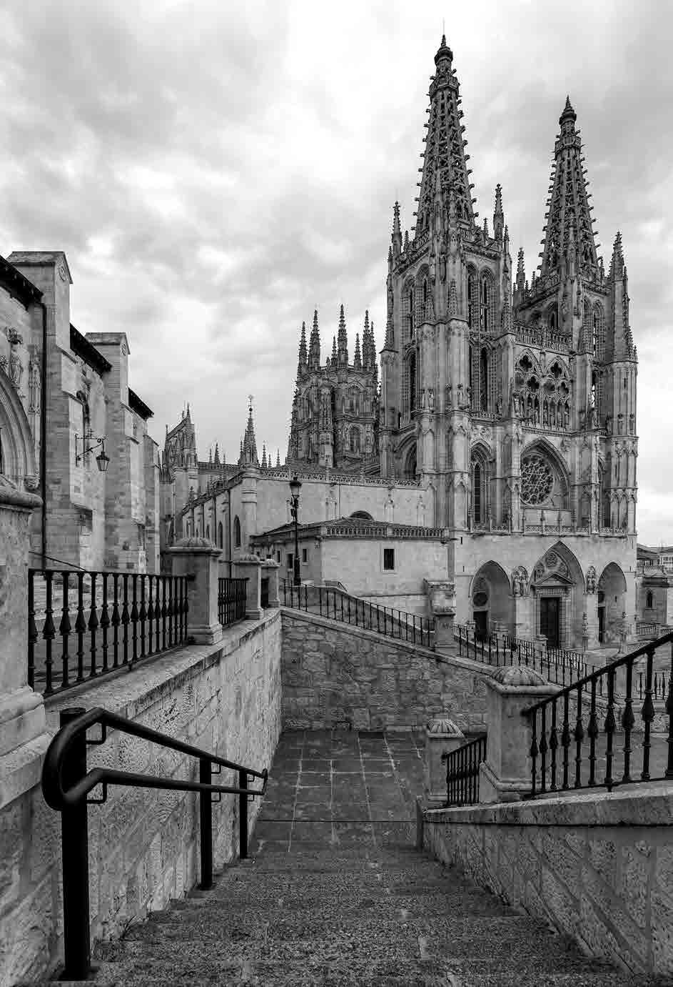 Облик кафедрального собора, сооруженного на берегу реки Арлансон (начало его строительства датируется 1221 годом), мало исказили позднейшие пристройки XV— XVI веков. Строители собора в Бургосе очень рано переняли характерные приемы французской готики и необычайно удачно использовали их. Здесь восхищают и цельность архитектурного замысла, и смелость его воплощения.