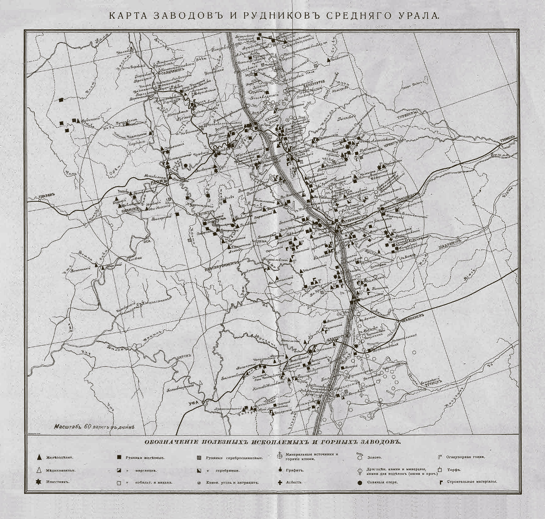 Известные месторождения высококачественных железных руд – горы Магнитная, Высокая, Благодать, Качканар1; медных руд – Медногорск, Карабаш, Сибай, Гай; редких цветных металлов, золота, серебра, платины, лучших в стране бокситов, каменных и калийных солей – Соликамск, Березники, Берёзовское, Важенское, Илецкое.
