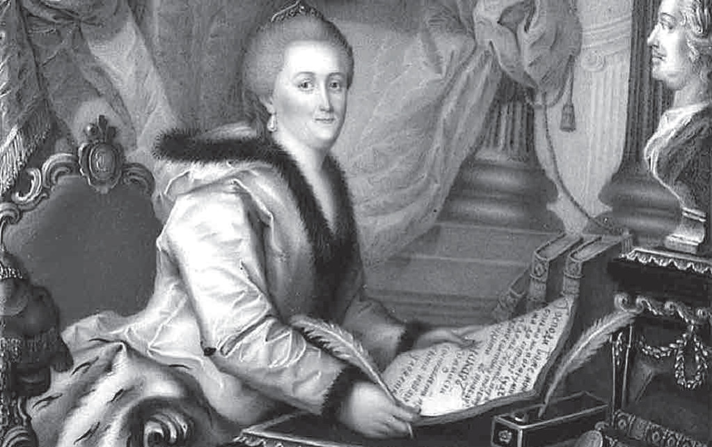 Государыня находила время издавать и редактировать журнал «Всякая всячина», сочинять пьесы для придворного театра (комедии «О, время!», «Именины госпожи Ворчалкиной», «Обманщик» и др.) и детские сказки, коллекционировать картины и книги, переписываться с французскими просветителями. Она написала интереснейшие мемуары, четырехтомные «Записки касательно российской истории», а наряду с этим сочиняла не очень складные стишки на смерть любимых собачек. Пробовала себя и в роли кутюрье: ввела при дворе обязательное ношение «русского платья» с коротким шлейфом и двойными рукавами, сконструировала особый свободный детский костюмчик для внука Александра. В 1782 году во время визита в Париж великого князя Павла Петровича этот наряд, врученный королевской чете, произвел фурор в столице европейской моды.