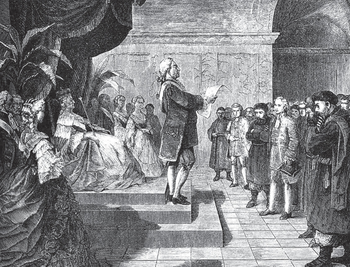 30 июля 1767 года торжественным богослужением в Успенском соборе Кремля открылась работа законодательной ассамблеи – комиссии «для сочинения проекта нового уложения». Для участия в ней в Первопрестольную съехались около шестисот представителей российского общества: дворяне, выборные от городов, депутаты от казаков и народов Поволжья, Приуралья и Сибири. Интересы помещичьих крестьян представляли господа, а государственным крестьянам досталось только 20 мест.