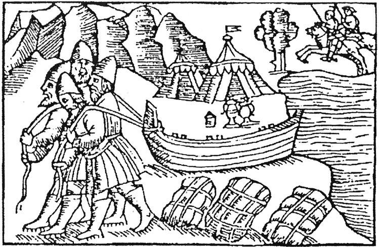 Что же возили на судах в ту пору? С севера России по водным путям шли рыба, пушнина, с юга, в основном, соль1, зерно. Значительная часть поступающих грузов шла в Москву. Из других стран по Волге привозили шелковые ткани (камка, тафта, атлас, бархат) и хлопчатобумажные ткани (бязь, пестрядь), ковры, пряности (шафран, мускус), сухофрукты, орехи, рис, а еще жемчуг. Из России за границу везли собольи, рысьи, куньи, горностаевые меха, а еще воск, мед, лосиные и коровьи кожи.