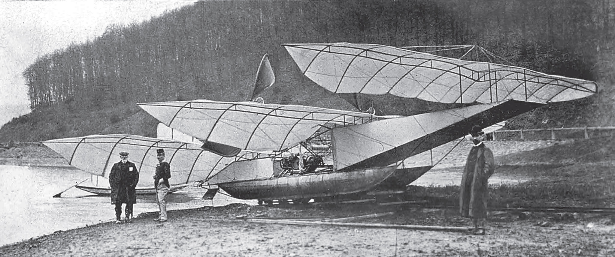 Впервые крылатый аппарат смог взлететь с воды летом 1905 года. Но это был не самолет, а планер. Его построили во Франции в мастерских Габриэля Вуазена по заказу Эрнста Аршдекона. По сути, это был большой коробчатый воздушный змей, поставленный на два поплавка. Единственным органом управления являлся руль высоты, размещенный на балках перед крылом.