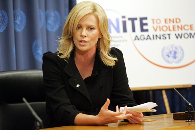 Актриса, которая родилась в ЮАР, тоже считает необходимым помогать африканским детям. Она стоит во главе благотворительного фонда Africa Outreach Project, который обеспечивает местные медпункты медикаментами и помогает молодежи получать образование. Терон стала участницей программы по постройке футбольных полей за пределами городов Южной Африки. Кроме того, Терон - активный член организации PETA («Люди за этичное обращение с животными»). Актриса с радостью соглашается принять участие в акциях и фотосессиях организации, чтобы напомнить людям простую истину: мех лучше всего смотрится на его законных владельцах — животных. В своих интервью актриса неоднократно подчеркивала, что не видит смысла в страданиях живых существ ради прихоти и моды.