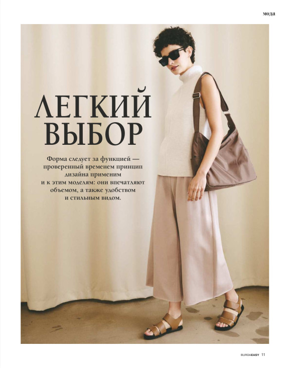 Журнал Burda Style — это европейская мода высокого класса. На страницах журнала — самые последние тенденции мировой моды, новости с европейских подиумов, советы по стилю и модные торговые марки. Каждый месяц — новая коллекция одежды от ведущих дизайнеров мира. Все выкройки Burda Style Вы сможете найти на сайте журнала http://burdastyle.ru/vikroyki/