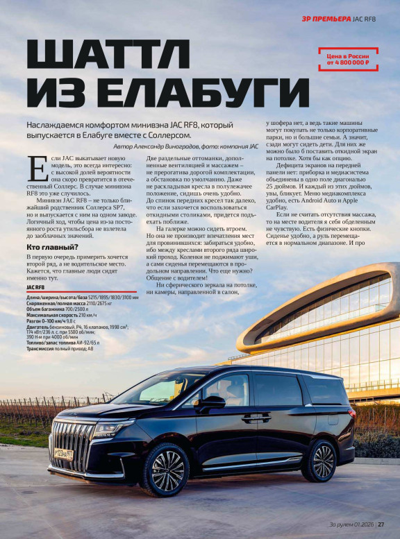 «За рулем» – первый автомобильный журнал России. Его отличают универсальность и разнообразие. Журнал не оставляет без внимания ни одну из автомобильных тем.