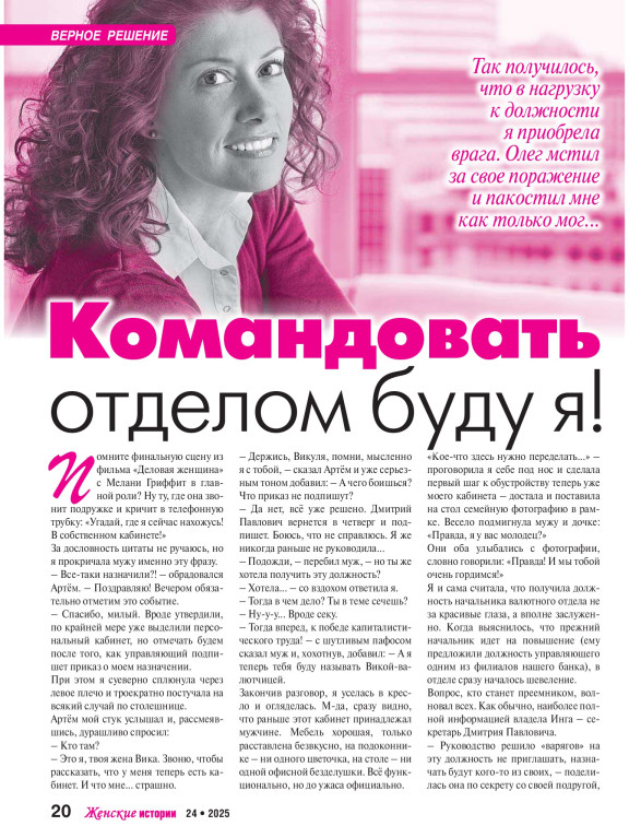 Жизнь так интересна, что захватывает дух! Обсудить самые острые новости, удивиться яркой судьбе, поплакать над трагедией и, порадовавшись, слегка позавидовать счастливчикам — такие женские желания и миссия журнала «Женские истории. Откровенные, душевные, правдивые»!