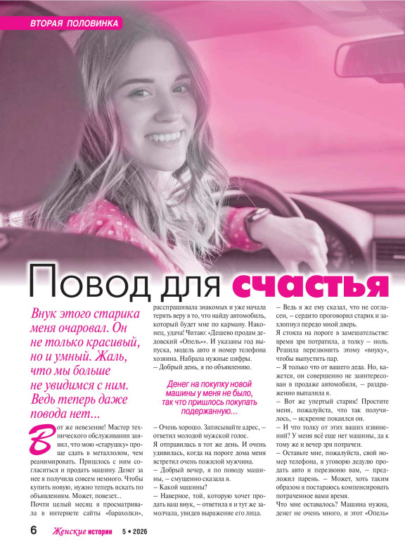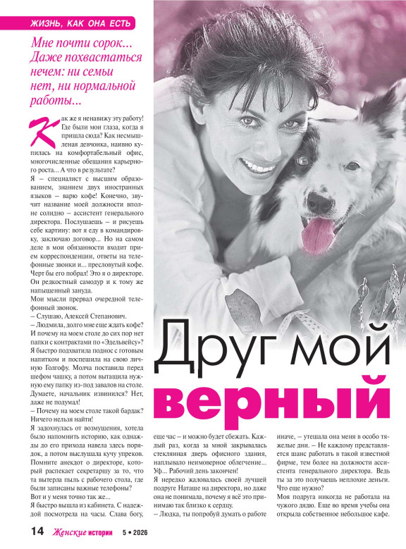 Жизнь так интересна, что захватывает дух! Обсудить самые острые новости, удивиться яркой судьбе, поплакать над трагедией и, порадовавшись, слегка позавидовать счастливчикам — такие женские желания и миссия журнала «Женские истории. Откровенные, душевные, правдивые»!